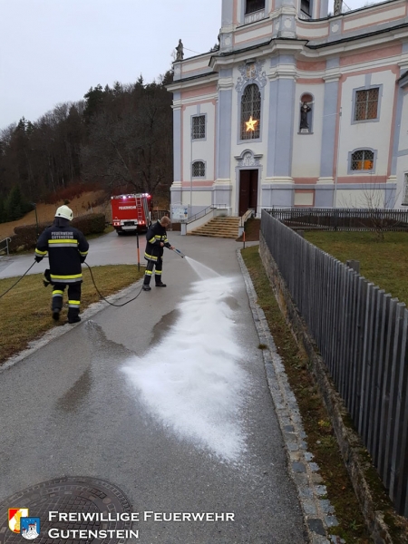 Am 09.12.2019 um 15.27 Uhr wurde die Feuerwehr Gutenstein zu einer Ölspur auf den Mariahilfberg gerufen. Aus bislang ungeklärter Ursache war eine ca. 4 km lange Ölspur von der Kirche bis zur Firma Ofner.