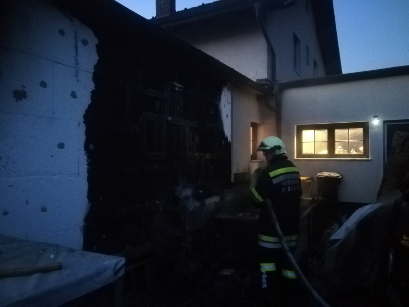 Das neue Jahr war gerade einmal 6 Stunden und 26 Minuten alt als 6 Feuerwehren des Abschnittes Gutenstein, nämlich Pernitz, Neusiedl, Gutenstein, Muggendorf, Thal und die BTF Essity Austria GesmbH Ortmann zu einem Schuppenbrand in die Pernitzer Feldgasse alarmiert wurden.Nach wenigen Minuten konnten bereits das TLFA und das RLFA der FF Pernitz ausrücken und erreichten die Einsatzstelle nach wenigen Sekunden. Der Einsatzleiter konnte feststellen, dass eine an das Nebengebäude angebaute kleine Hütte in Brand stand. Mittels C-Löschleitung wurde begonnen den Brand einzudämmen, mittels Schanzwerkzeug wurde das Brandgut zerteilt.