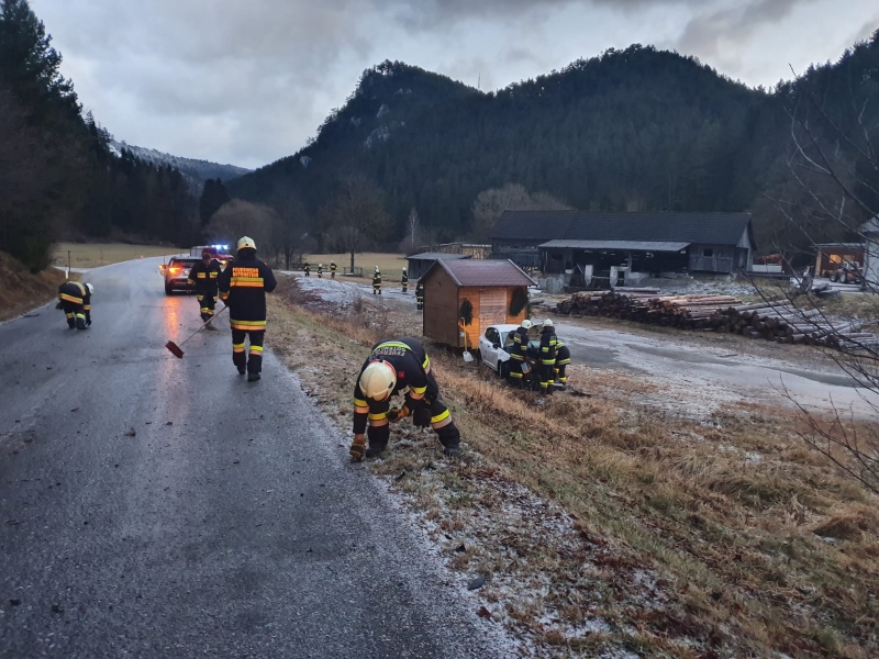 Am Sonntag den 05.01.2020 um ca. 7 Uhr 15 wurde die FF Gutenstein zu ein Verkersunfall ins Klostertal gerufen. Aus noch ungeklärter Ursache rutschte ein Pkw auf höhe Wilsch in den Graben und blieb seitlich liegen. Im Fahrzeug befand sich eine Person die von der Rettung Pernitz ins Krankenhaus gebracht wurde. Nach der Freigabe durch die Polizei wurde das Auto wieder aufgestellt, gesichert abgestellt und die Fahrbahn gereinigt. Die Mitglieder der FF Gutenstein konnten nach ca. 1 Stunde wieder ins Feuerwehrhaus einrücken.