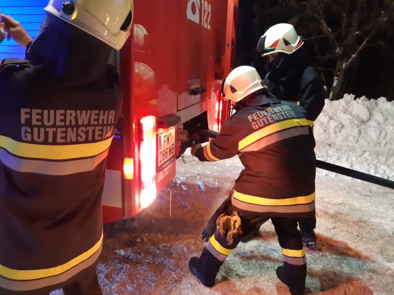 Am 18.01.2021 um 20:29 Uhr wurde die FF Gutenstein das vierte mal zu einer Lkw Bergung alarmiert. Wieder ins Klostertal höhe Jansch "ehemaliges Sägewerk". Aufgrund der Winterlichen Verhältnisse kam ein Sattelschlepper, trotz aufgelegter Ketten, auf der ansteigenden Fahrbahn zum stehen. MTF-A und KRFA-B (Rüst Gutenstein) rückten mit insgesamt zwölf Kameraden aus, um den hängen gebliebenen Sattelschlepper von der Fahrbahn auf den Parkplatz der Firma Hofer (Dreh&Drink), mittels Schleppstange zu ziehen. Nach ca. Fünfzig Minuten konnten die Kameraden der FF Gutenstein die Einsatzbereitschaft wieder herstellen.