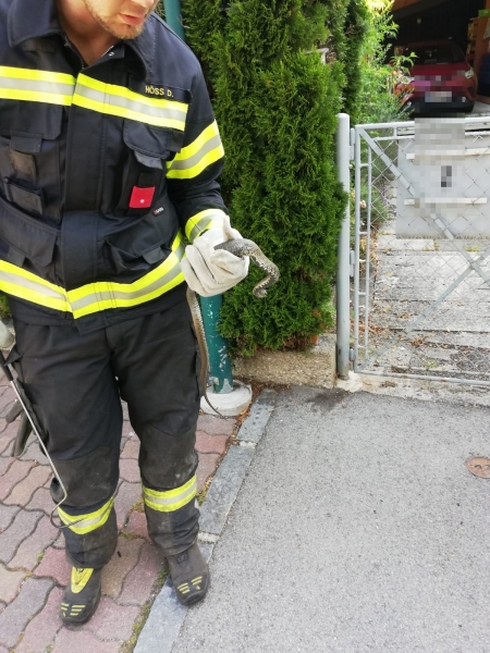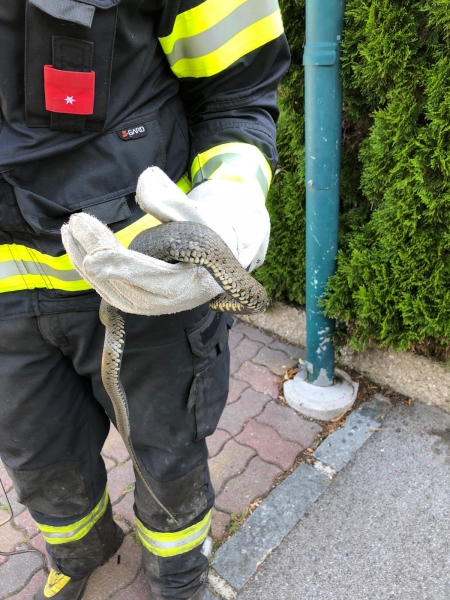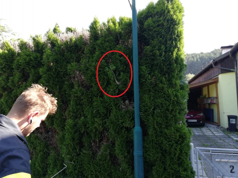……lautete am 28.07. 2021 um 09:00 Uhr die stille Alarmierung der Bezirksalarmzentrale Wiener Neustadt. 9 Mann rückten kurz danach mit dem HLF 2 zur Einsatzadresse aus. Dort angekommen fanden die Kameraden eine – wie sich später herausstellte – Ringelnatter in den Tujen vor.
