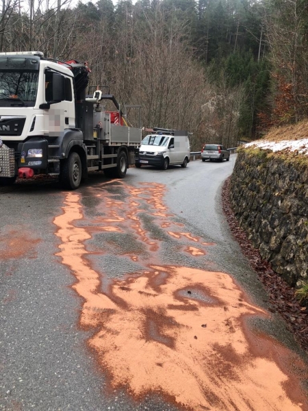 Mit einem Ölbindemittel versuchte die Feuerwehr so gut wie möglich das Öl zu binden. Gleichzeitig wurde auch die Straßenmeisterei Gutenstein informiert um weitere Maßnahmen zu besprechen. Es wurde eine Spezialfirma hinzugerufen um die Fahrbahn fachmännisch zu reinigen.