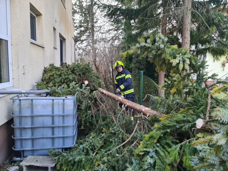 Auch in Pernitz schlug das Sturmtief zu. Am Sonntag, den 30. Jänner knapp vor 08:00 Uhr brach „Nadia“ in der Gentzschgasse den Stamm einer stattlichen Fichte im oberen Drittel des Baumes ab, welcher auf dem daneben befindlichen Hausdach zum Liegen kam. Der Bruch fand wahrscheinlich deshalb statt, weil sich in diesem Bereich der Stamm teilte.