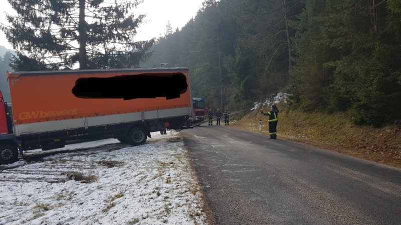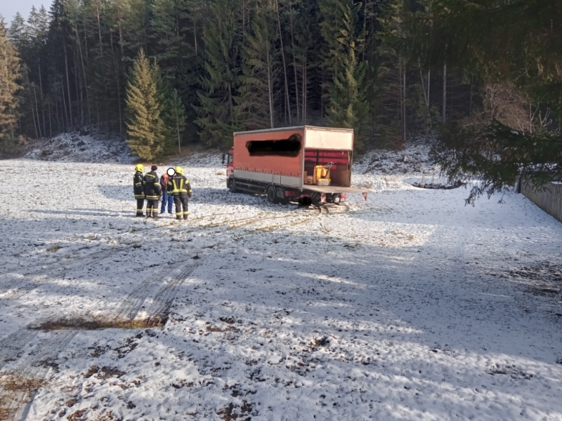 Der Lenker eines LKW wollte am 15. Dezember mittags in Feichtenbach unmittelbar nach der Hausnummer 16 auf einer Wiese umdrehen und blieb auf der Schneedecke bzw. dem weichen Untergrund stecken.