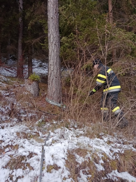 Der LKW wurde mit zwei Endlosschlingen und der Seilwinde bis auf ca. 5 Meter in Richtung Straße gezogen. Dann musste das HLF seine Stellung wechseln um das Fahrzeug wieder auf die Straße zu bringen. Dafür musste eine Umlenkrolle eingesetzt werden, die am Waldrand an einem Baum befestigt wurde. Damit konnte der LKW auf den Asphalt gezogen werden. Im Anschluss konnte er die Fahrt aus eigener Kraft wieder fortsetzen.