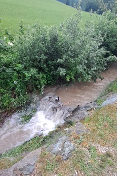 Laut Alarmierung drohte der Bach nach den starken Regenfällen durch eine Verklausung über die Ufer zu treten. Am Einsatzort angekommen, zeigte sich jedoch eine ganz anderes Bild.