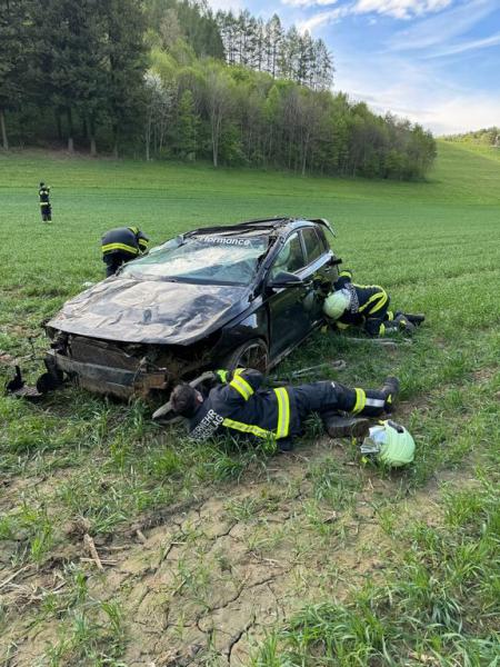 Die Einsatzkräfte fanden das Fahrzeug am Dach liegend vor, der Lenker hatte zuvor den Wagen aus eigener Kraft verlassen, dieser wurde vom Roten Kreuz Kirchschlag versorgt. Der Pkw wurde mittels Seilwinde auf die Räder gestellt und gesichert abgestellt. Gleich nachdem die FF Kirchschlag eingerückt war, begann die planmäßige Wettkampfübung.
