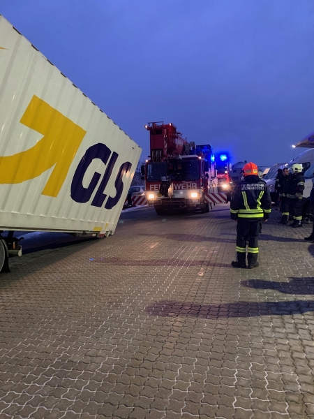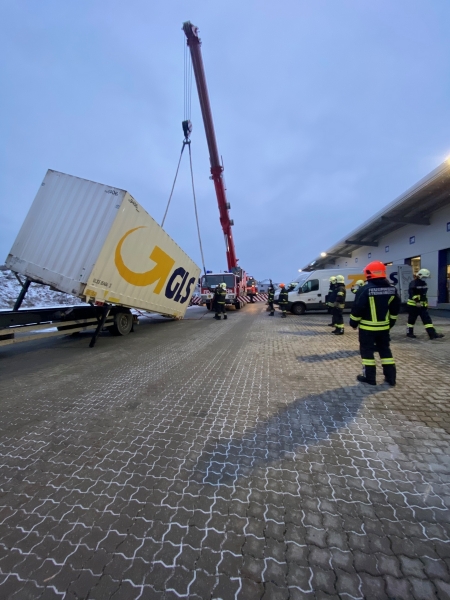 Am Freitag, 15.Jänner 2021 kurz nach 6 Uhr morgens wurden die Kameraden der Freiw. Feuerwehr Steinabrückl zu einer Lkw-Bergung eines umgestürzten WAP Anhängers samt Container bei einem ortsansässigen Paketdienst alarmiert.