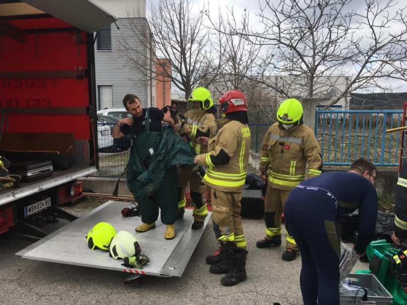 Der Einsatz gestaltete sich insofern als sehr schwierig, da in beengten Verhältnissen unter ständiger Belüftung im Schutzanzug und Atemschutz mit dem Techniker am Telefon kommuniziert werden musste.