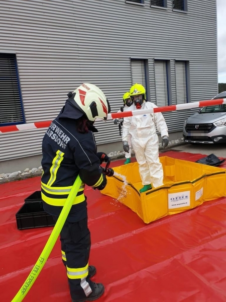 Zu einem langwierigen Schadstoffeinsatz kam es heute um 08:40 Uhr in Wöllersdorf. Durch einen technischen Defekt an einer Entfettungsmaschine trat zunächst eine geringere Menge eines Reinigungsmittels aus der Maschine aus.Noch vor dem Eintreffen der Feuerwehr konnte vom Betriebspersonal die ausgetretene Flüssigkeit behelfsmäßig gebunden werden.