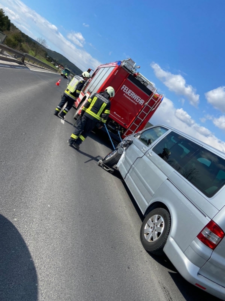 Am Nachmittag des 8. April kollidierten zwei Fahrzeuge auf der B21 und konnten durch den entstandenen Schaden nicht mehr selbstständig weiterfahren.Unter Zuhilfenahme der Schleppachse bzw. der Rangierroller wurden die beiden Fahrzeuge von der Unfallstelle verbracht und gesichert abgestellt.Die ausgelaufenen Flüssigkeiten wurden gebunden.