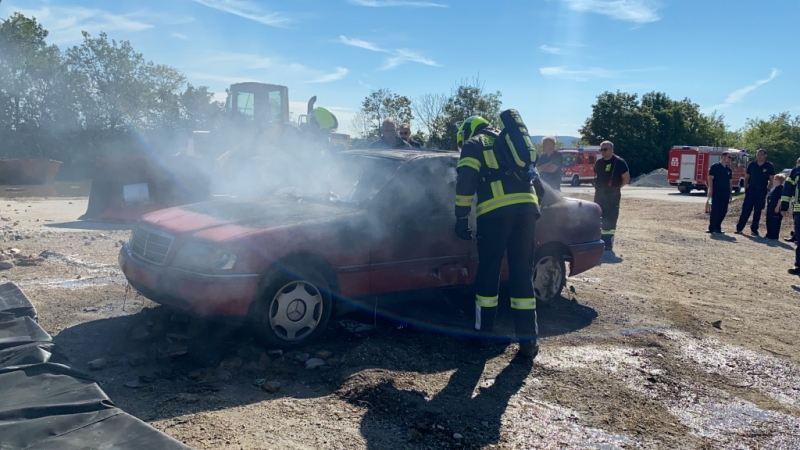 Bei der samstägigen Schulung (7. August) der Ebenfurther Florianis drehte sich alles um das Thema Löschdecke für den Fahrzeugbrand. Vorgeführt wurde diese von der Firma Jost Brandschutz am Rübenplatz in Ebenfurth. Mitglieder der Feuerwehren Eggendorf, Zillingdorf/Bgw. und Haschendorf nahmen an der Vorführung ebenfalls teil.