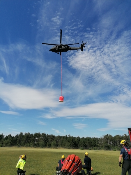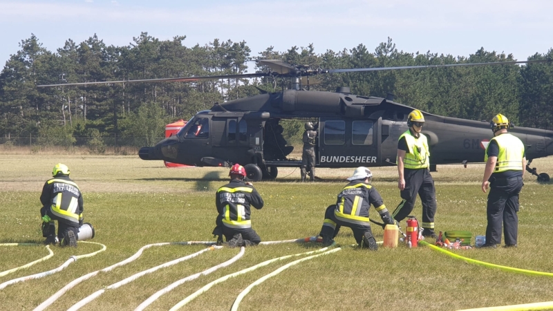 Es ist wieder ein Black Hawk für die Eindämmung der Glutnester und ein OH-58 "Kiowa" mit Wärmebildkamera (FLIR) im Einsatz.Die Einweisung der Hubschrauber erfolgt durch die Flughelfer, die teilweise ihren Job mit der Unterstützung des Bundesheeres auf Panzern durchführen.
