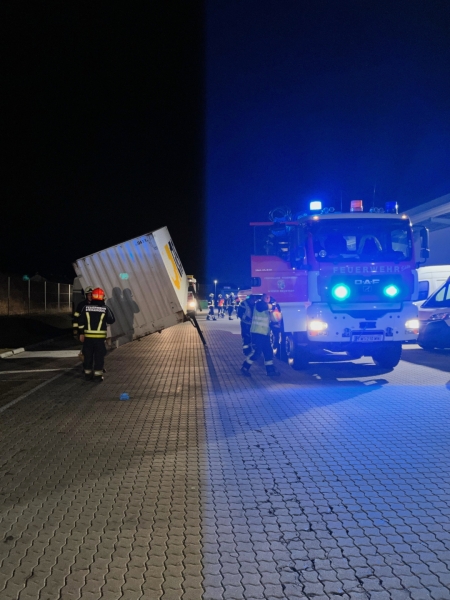 Am Mittwoch, 22.Februar 2023 kurz vor dreiviertel fünf Uhr morgens wurden die Freiwilligen Feuerwehr Steinabrückl zu einer Bergung eines umgestürzten Fracht-Container bei einem ortsansässigen Paketdienst alarmiert. Bei unserem Eintreffen stand ein umgekippte Frachtcontainer auf der Fahrbahn und lehnte sich an einen daneben geparkten Kleintransporter. Vom Einsatzleiter der Freiwilligen Feuerwehr Steinabrückl wurde entschieden, die Unfallstelle abzusichern und einen Kran zur Unterstützung bei den Bergungsarbeiten anzufordern.
