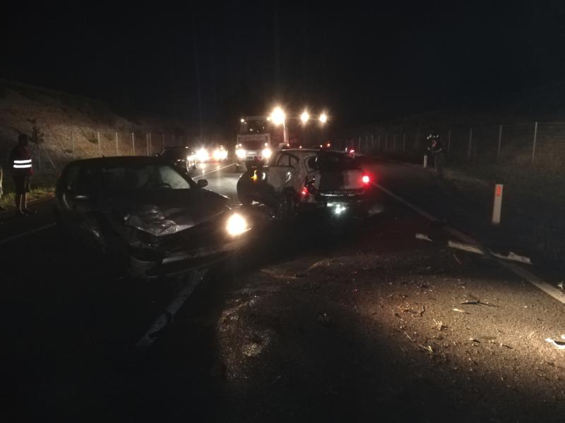 Bei der Ankunft der Feuerwehr Theresienfeld wurde die Fahrbahn gesperrt und ausgeleuchtet, da die angeforderte Polizei noch nicht Vorort war und die Unfallstelle unübersichtlich war.