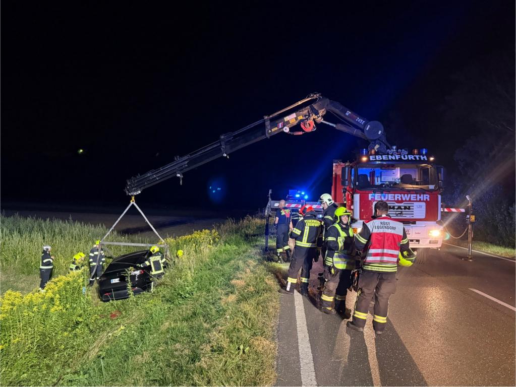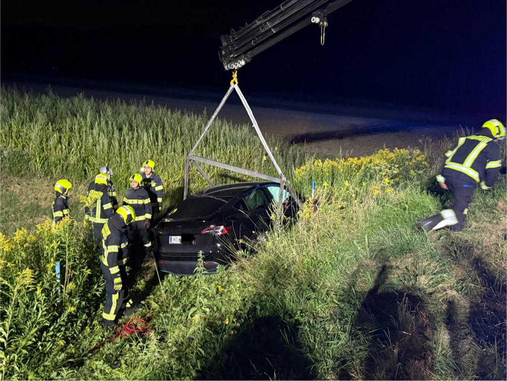 Nach der polizeilichen Aufnahme musste ein beteiligter Tesla mittels Kran der FF Ebenfurth aus dem Graben geborgen werden. Dieser wurde anschließend auf einem Platz für ein Abschleppunternehmen bereitgestellt. Das zweite Fahrzeug konnte die Unfallstelle selbstständig verlassen. Neben den Feuerwehren standen zwei Polizeistreifen sowie zwei RTW des Roten Kreuzes im Einsatz. Die Bundesstraße musste während der Rettungs- und Bergearbeiten für knapp eine Stunde gesperrt werden.