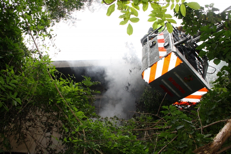 Über die Drehleiter wurde auch das Obergeschoss geöffnet. "Da die Rauchentwicklung im Bereich des Dachstuhls nicht nachließ, wurde die Dachhaut geöffnet und wir fanden Glutnester vor, welche sofort abgelöscht wurden", so Pfeiffer weiter. Nach rund zwei Stunden, um 17:40 Uhr, konnte Brand aus gegeben werden. Die Exekutive übernahm die Brandursachenermittlung. Im Zuge derer wurde noch ein Glutnest entdeckt, welches von der Besatzung eines Tanklöschfahrzeuges noch abgelöscht wurde. Um 18:45 Uhr rückte auch dieses Tanklöschfahrzeug dann ins Feuerwehrhaus ein.