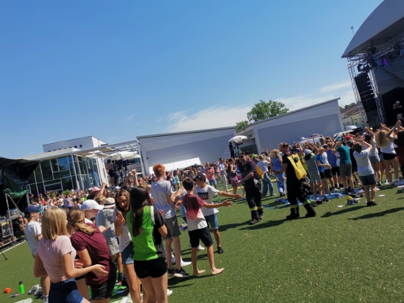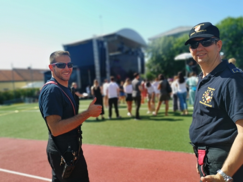 Da während des Konzerts schnell klar wurde, dass die hohen Temperaturen den Besucherinnen und Besuchern, welche in prallem Sonnenschein standen, einiges abverlangen würde, reagierte die Feuerwehr pragmatisch. Mit den Waldbrandrucksäcken gingen die Einsatzkräfte durch die Zuschauergruppen und kühlten die Kinder kurzerhand ab. Das Rote Kreuz war ebenfalls vor Ort und kümmerte sich um einige Sonnenstiche, denen die Hitze trotz Abkühlung doch zu viel wurde. Gröbere Notfälle blieben jedoch glücklicherweise aus.