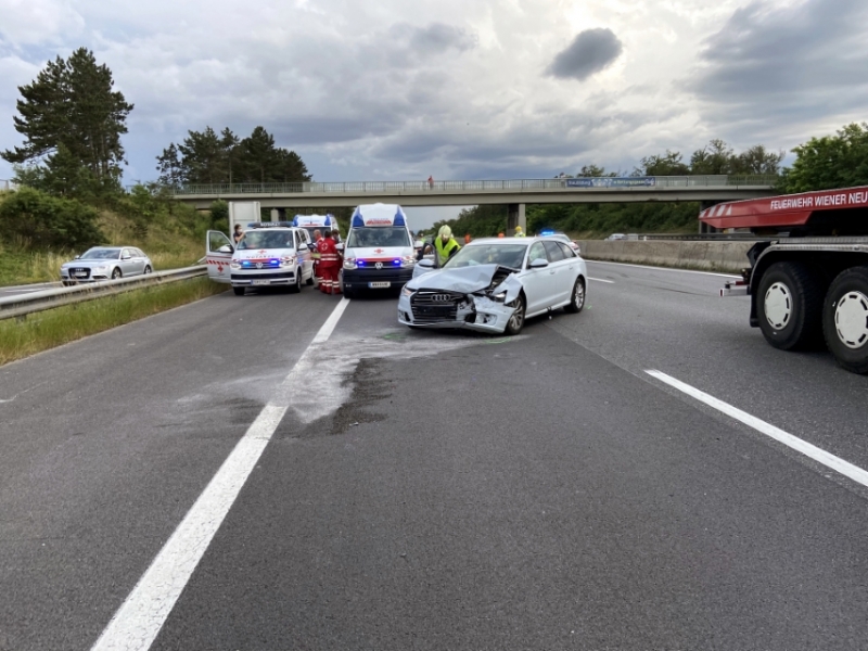 Am Abend des 11. Juli kam es im Rückreiseverkehr auf der Südautobahn in Fahrtrichtung Wien zu einem Verkehrsunfall zwischen mehreren Fahrzeugen. Im Bereich des Rastplatz Leobersdorf kollidierten die Autos und blockierten alle Fahrspuren. Mehrere Personen wurden verletzt. Es entstanden erhebliche Verzögerungen im Abendverkehr. Kurz nach 18.00 Uhr meldete die Bezirksalarm- und Warnzentrale Baden den Kameraden in Wiener Neustadt einen schweren Verkehrsunfall im Einsatzgebiet. Auf der Südautobahn waren mehrere Fahrzeuge in einen Unfall verwickelt und einige Personen verletzt worden. Ein Großaufgebot an Einsatzkräften von Feuerwehr und Rettungsdienst machten sich auf den Weg zur Einsatzstelle.