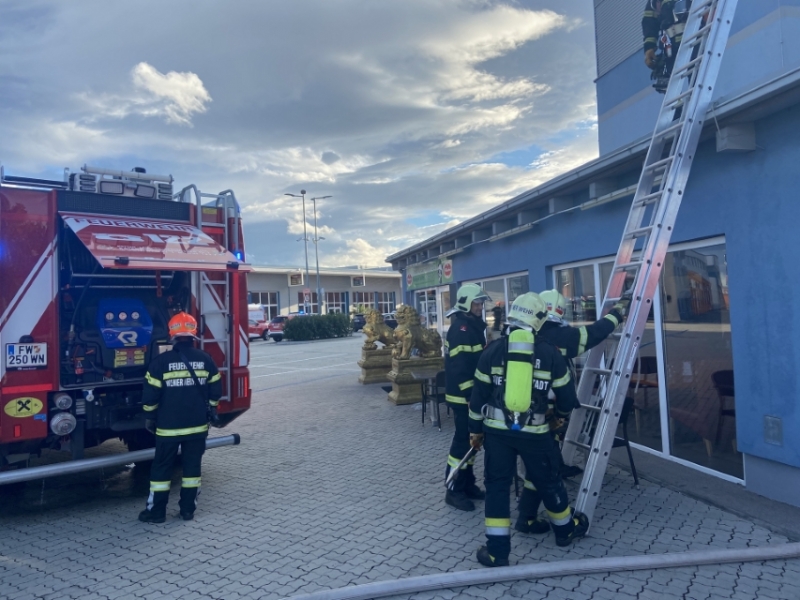 Zahlreiche Einsatzkräfte bekämpften am Donnerstagabend, 5. August, einen Küchenbrand in einem Gastronomiebetrieb in der Wiener Neustädter Wiener Straße. Im Bereich der Dunstabzugsanlage kam es hier zu einem Brand. Löschversuche mit einem Handfeuerlöscher konnten die Brandausbreitung in die Lüftungsanlage nicht verhindern. Kurz nachdem der erste Notruf aus dem Chinarestaurant bei der Feuerwehr einging, rückte das erste Tanklöschfahrzeug zur Einsatzstelle aus. Während die ersten Kräfte noch auf Anfahrt zur Einsatzstelle waren, wurden weitere Einsatzkräfte per Personenrufempfänger alarmiert. Aufgrund der Meldungen der Notrufe und der Tatsache, dass zum Zeitpunkt des Alarmeingangs damit gerechnet werden musste, dass sich noch zahlreiche Gäste im Lokal aufhalten würden, wurde die zweithöchste Alarmstufe "B3" ausgelöst und die gesamte Mannschaft der Freiwilligen Feuerwehr Wiener Neustadt alarmiert.