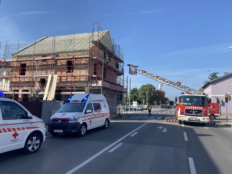 Zur Unterstützung des Rettungsdienstes bei einer Menschenrettung wurde die Freiwillige Feuerwehr Wiener Neustadt Mittwoch Vormittag gerufen. Ein Bauarbeiter verletzte sich auf einer Baustelle schwer am Bein. Die Rettung aus dem Obergeschoss war nur mittels Drehleiter möglich.Der Bauarbeiter verletzte sich während der Arbeiten an einer Wohnhausbaustelle. Aufgrund der baulichen Begebenheiten und des Ausmaßes der Verletzungen war es ded anwesenden Rettungskräften vom Roten Kreuz nicht möglich, den Mann auf konventionellem Weg abzutransportieren. Nach der Erstversorgung durch den Notarzt wurde der Verletzte, sicher gebettet auf einer speziellen Vakuummatratze, mittels Tragenvorrichtung der Drehleiter aus dem Obergeschoß gerettet. Begleitet von einem Notfallsanitäter des Roten Kreuz konnte der Mann so schonend auf die Erde gebracht werden, wo er wieder an die Rettungskräfte übergeben und weiter versorgt wurde.