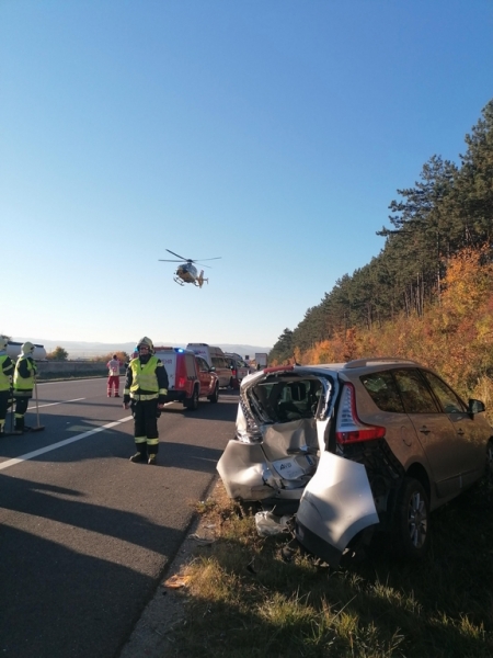 Beim Eintreffen der ersten Einsatzkräfte war ein 82- jähriger Fahrzeuglenker schwer verletzt im Pkw eingeklemmt. Seine 80- jährige Beifahrerin konnte von Sanitätern des Roten Kreuz bereits aus dem Fahrzeug befreit werden. Ein Notfallsanitäter der Berufsrettung Wien kam, vom Nachtdienst kommend, zufällig an der Einsatzstelle vorbei und leistete bis zum Eintreffen und der weiteren Versorgung der beiden Notarztteams Erste Hilfe. Neben zahlreichen Rettungsfahrzeugen waren auch zwei Notärzte zur Versorgung der Verletzten vor Ort. Für die Landung des Notarzthubschraubers Christophorus 3 musste die Autobahn in Fahrtrichtung Graz zeitweise komplett gesperrt werden.