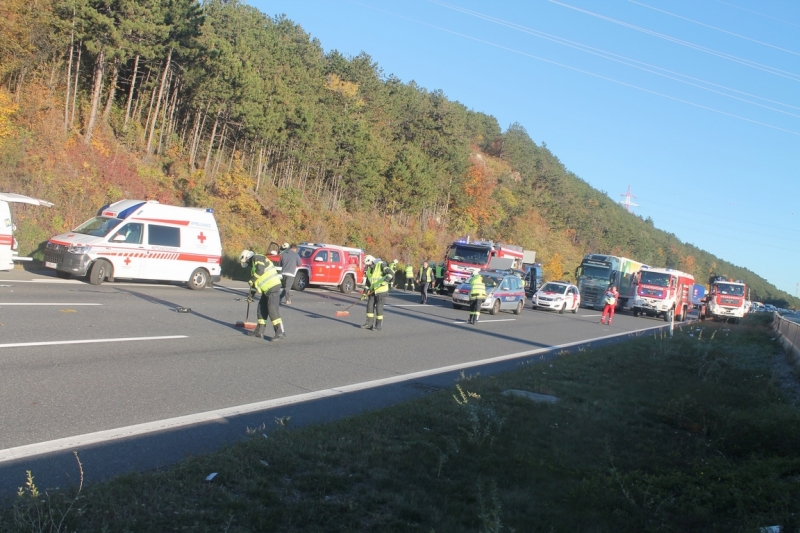 Die Freiwillige Feuerwehr Wiener Neustadt erhielt gegen 08.15 Uhr mehrere Meldungen über einen schweren Verkehrsunfall auf der Südautobahn. Kurz nach der Autobahnauffahrt Wöllersdorf kollidierten mehrere Fahrzeuge miteinander. Laut ersten Meldungen waren mehrere Personen nach einem Aufprall mit einem tonnenschweren Lkw eingeklemmt.