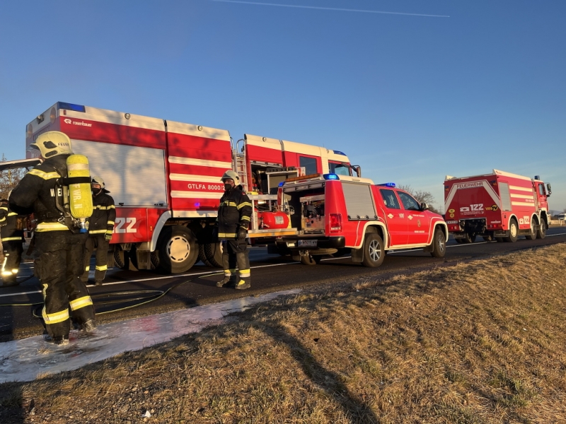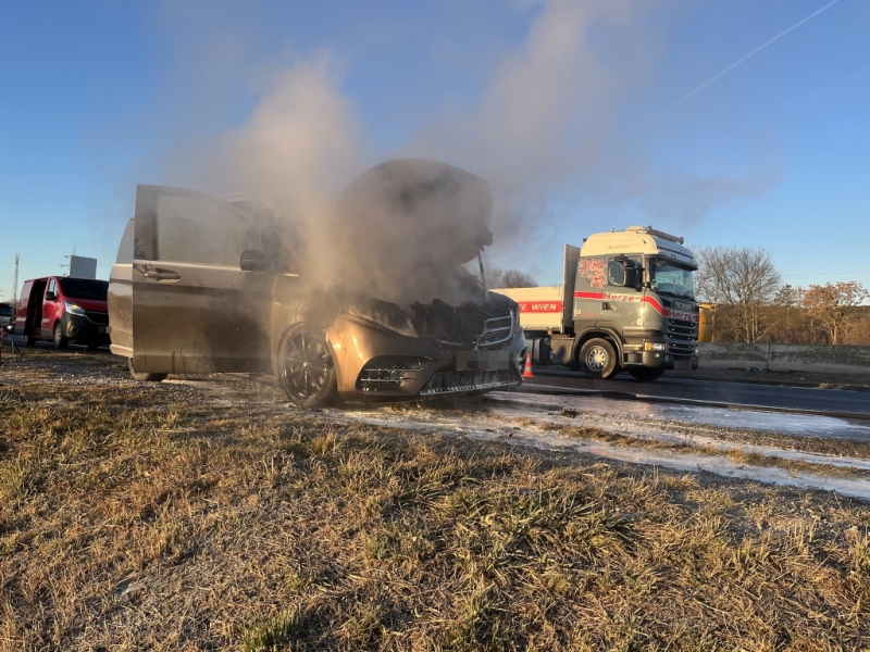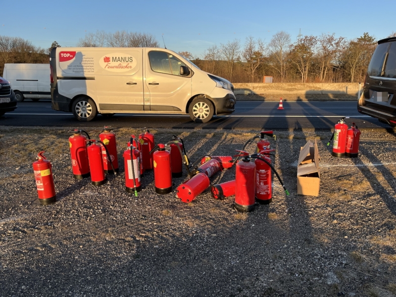 Wie wichtig ein Handfeuerlöscher im eigenen Pkw wäre, hat am 19. Jänner ein Fahrzeugbrand auf der Südautobahn gezeigt. Während der Fahrt bemerkte der Lenker eines Mercedes Vito plötzlich eine Rauchentwicklung aus dem Motorraum. Der Brand konnte durch Ersthelfer mittels mehrerer Handfeuerlöscher bis zum Eintreffen der Feuerwehr unter Kontrolle gehalten werden. So wurde mit Sicherheit ein Vollbrand des Pkws verhindert. Nachdem der Lenker am Pannenstreifen angehalten hatte, breitete sich der Brand rasch im Motorraum aus. Ein Feuerwehrmann sowie ein Rot Kreuz Mitarbeiter auf dem Weg in die Arbeit wurden auf die Rauchentwicklung aufmerksam und kamen mit den in ihren Pkws mitgeführten Handfeuerlöschern zu Hilfe. Zwei Firmenwagen von Brandschutzfirmen blieben ebenfalls stehen und versorgten die Ersthelfer mit weiteren Handfeuerlöschern. Die Ersthelfer konnten die Flammen bis zum Eintreffen der Feuerwehr im Motorraum unter Kontrolle halten.