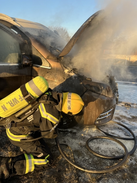 Schlussendlich wurde der Brand unter umluftunabhängigem Atemschutz durch die Feuerwehr gelöscht. Der Pkw wurde anschließend von der Feuerwehr von der Autobahn verbracht.