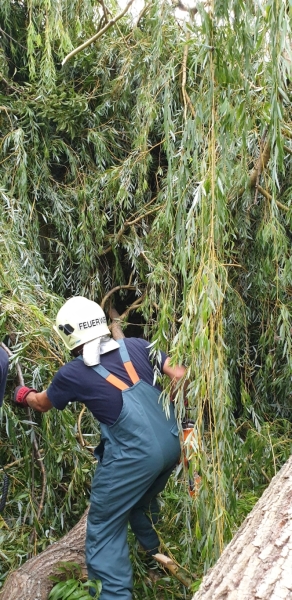 Am schlimmsten traf es ein Haus in der Katzelsdorfer Straße als ein Baum entwurzelt wurde und auf das Dach stürzte. In Mitleidenschaft gezogen wurde auch ein Pkw am Flugfeld, als ein Baum umstürzte und das Fahrzeug beschädigte.