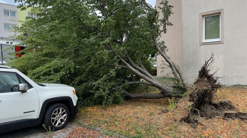 Wie auch in anderen Teilen des Landes blieb auch Wiener Neustadt am 18. August nicht von Unwettern verschont. Der starke Wind verursachte auch hier mehrere Schäden. Die Feuerwehr musste über ein Dutzend Mal zu Sturmeinsätzen ausrücken. Mehrere Bäume wurden im Stadtgebiet entwurzelt. Ein ausgerissener Baum beschädigte dabei ein Hausdach. Einen einsatzreichen Tag mussten die ehrenamtlichen Mitglieder der Freiwilligen Feuerwehr Wiener Neustadt am Donnerstag abhandeln. Neben über einem Dutzend Sturmeinsätzen musste auch zu Brandalarmen und Unfällen in Wohnungen ausgerückt werden. Zu Spitzenzeiten musste am Nachmittag die gesamte Mannschaft der FF Wiener Neustadt per Personenrufempfänger alarmiert werden, um die Einsätze abarbeiten zu können.
