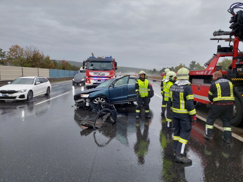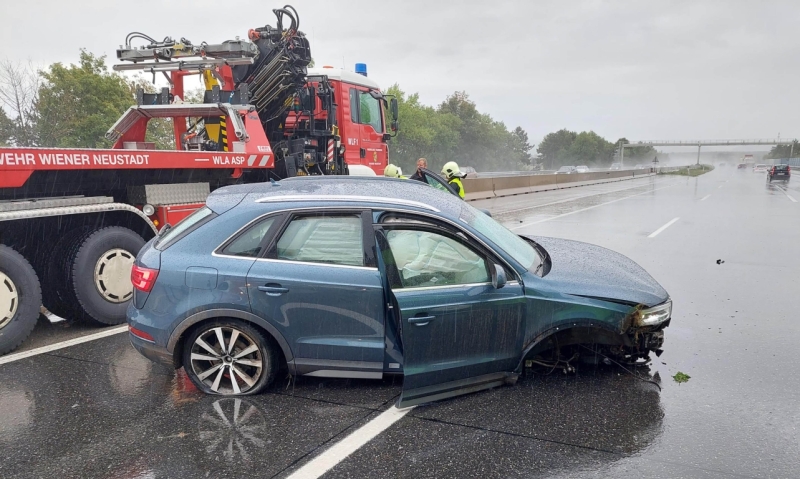 Um 07:15 Uhr am 23. August 2022 wurde die Freiwillige Feuerwehr Wiener Neustadt zur Fahrzeugbergung auf die A2 Südautobahn in Fahrtrichtung Graz gerufen. Im Morgenverkehr bei regnerischer Fahrbahn kam eine Lenkerin mit ihrem in der Steiermark zugelassenen Fahrzeug aus bislang unbekannter Ursache bei voller Fahrt in Berührung mit der Betonleitwand neben der dritten Fahrspur. Bei der Kollision wurde das Fahrzeug schwer beschädigt und in weiterer Folge das rechte Vorderrad abgerissen. Der Pkw kam nach einigen Metern zwischen der zweiten und dritten Spur zum Stehen.