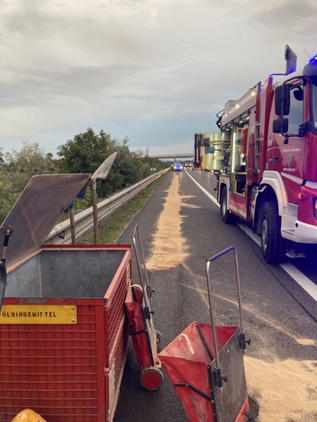 Vermutlich aufgrund eines auf der Fahrbahn liegenden Teils wurde ein Loch in einen Dieseltank bei einem Lkw geschlagen. Auch aufgrund des nachfolgenden Verkehrs verteilte sich die Dieselspur auf einer Länge von 500 Metern. Die alarmierten Kräfte der Feuerwehr sorgten zunächst mit einer Auffangwanne, dass kein weiterer Kraftstoff ausläuft. Mit Ölbindemittel wurde ein kleiner Damm aufgeschüttet, um bereits ausgetretenen Kraftstoff vor einer Verteilung und einem Versickern im Erdreich der Bankette zu verhindern. "Der Dieseltank fasste rund 400 Liter. Wir konnten 350 Liter auffangen und die Umwelt davor schützen. Auch der nicht unbeträchtliche wirtschaftliche Schaden, der durch den fehlenden Kraftstoff einzutreten drohte, konnte durch den Einsatz abgewendet werden", so Branddirektor Christian Pfeiffer, Kommandant der Freiwilligen Feuerwehr Wiener Neustadt.
