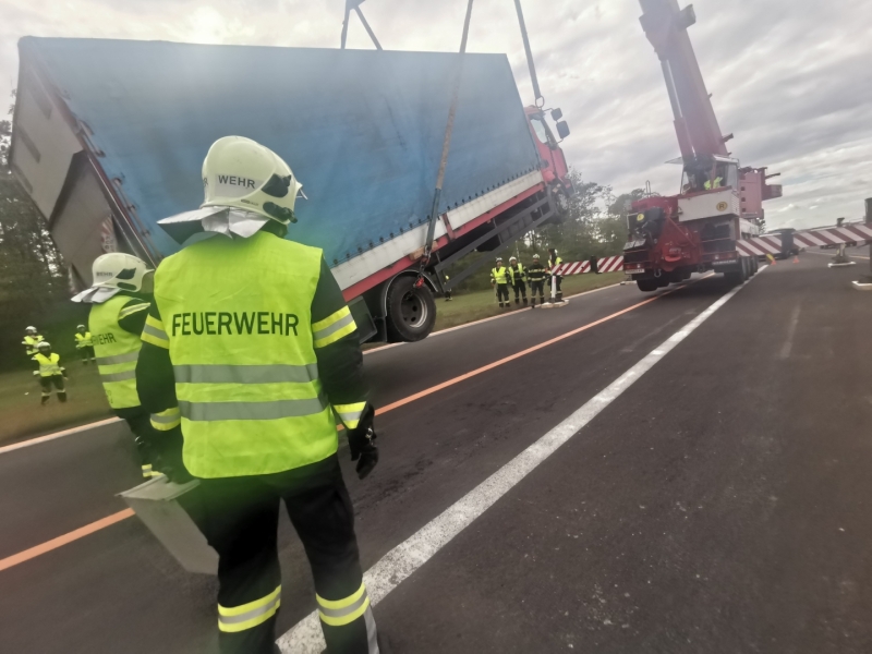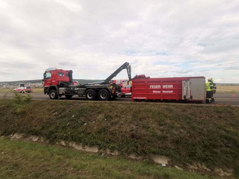 Zu einer Lkw-Bergung wurden die Mitglieder der Freiwilligen Feuerwehr Wiener Neustadt am Nachmittag des 26. September 2022 gerufen. Auf der A3 kurz nach der Abfahrt von der S4 in Fahrtrichtung Wien kam ein Lkw von der Fahrbahn ab und blieb im Graben stehen.