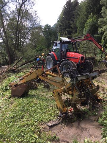 Weiteren wurde damit begonnen die Ortsstrasse vom Schlamm zu reinigen.