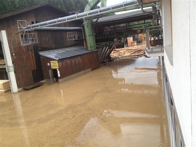 Unterstützung der Feuerwehr Seebenstein wurde in diesem Bereich, wo der Bach ausuferte, ein