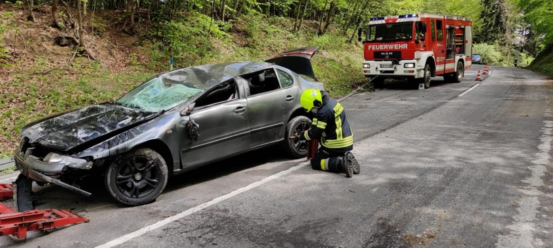 Verkehrsunfall T1 lautete am Mittag des 6. Mai 2021 die Alarmierung zum Techn. Einsatz auf die LH 148. Bereits wenige Minuten später rückte die FF Walpersbach mit 2 Fahrzeugen zum Einsatzort Schleinzer Berg aus.Der verunfallte PKW kam aus unbekannter Ursache von der Fahrbahn ab, überschlug sich und kam schließlich am Fahrzeugdach zu liegen.