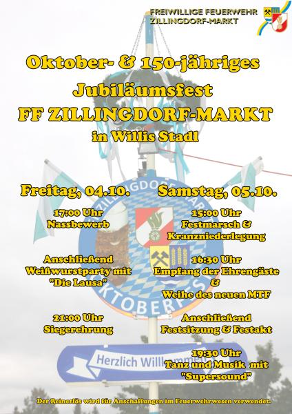Am Samstag folgt gegen 14:00 Uhr der Festmarsch durch den Ort, inklusive Kranzniederlegung beim Kriegerdenkmal. Für 16:30 Uhr ist der Empfang der Ehrengäste sowie die Weihe des neuen MTF beim Feuerwehrhaus geplant. Anschließend geht es gegen 17:30 Uhr in die Festhalle, wo die Festsitzung und das Oktoberfest stattfinden.