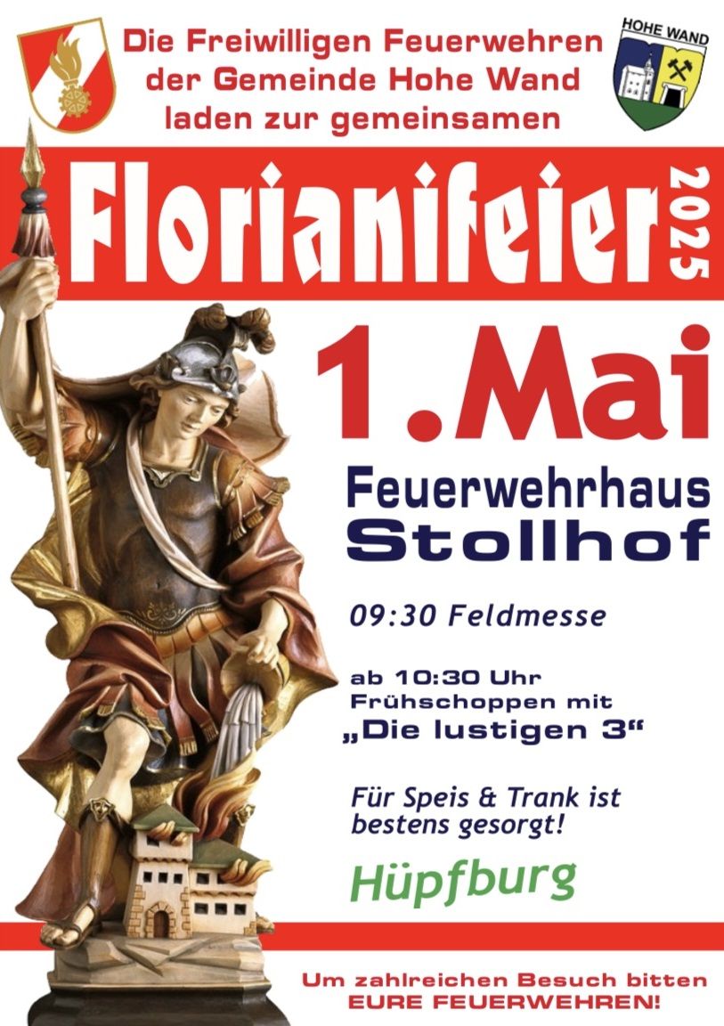 Die Freiwilligen Feuerwehren der Gemeinde Hohe Wand laden zur gemeinsamen Florianifeier ein: