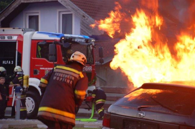 Nach dem offiziellen Teil konnten die neuen Fahrzeuge von jedem besichtigt werden. Als Höhepunkt wurden eine Schauübung "Brand" und eine Schauübung "Technisch" mit dem neuen Hilfeleistungsfahrzeug 3 und den benachbarten Feuerwehren Ober-Piesting und Oed vorgeführt, danach ließ man den Abend gemütlich ausklingen. Ein herzlicher Dank für die Bewirtung der Gäste geht an die Landesberufsschule für Tourismus in Waldegg.
