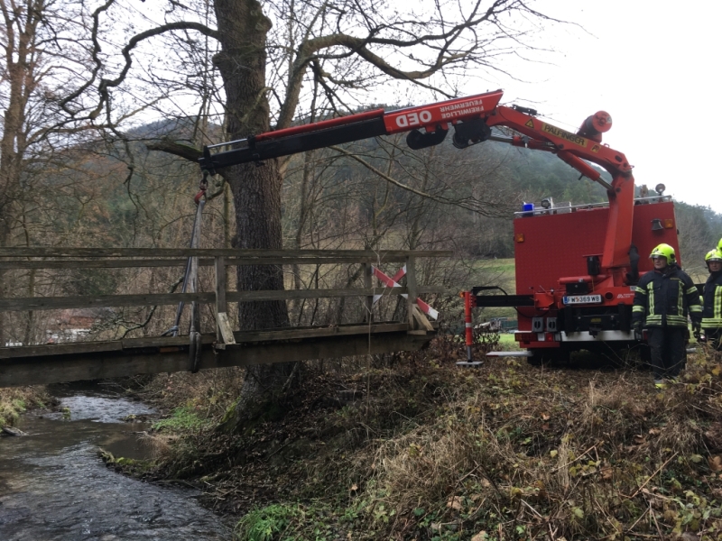 Am Samstag, den 3.12. hielt die FF Oed eine technische Übung in Steinbach ab. Eine baufällige Holzbrücke über den Miesenbach musste aus Sicherheitsgründen demontiert werden.
