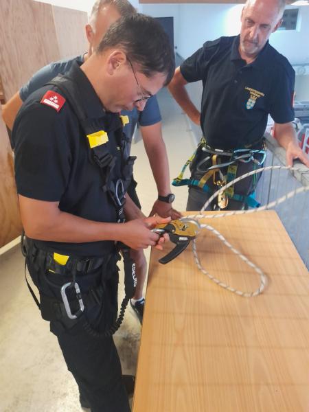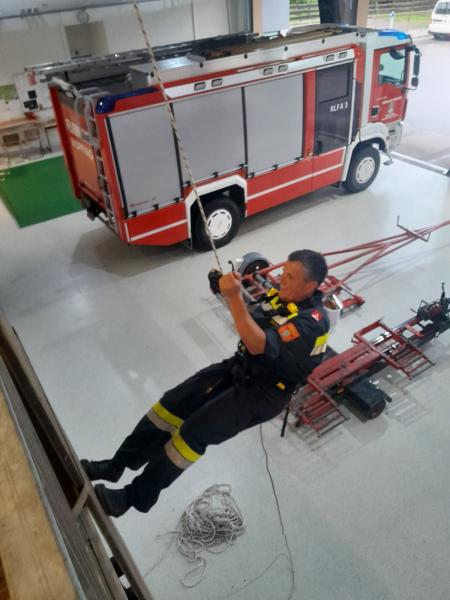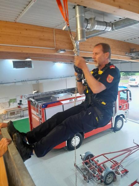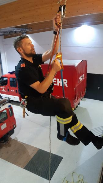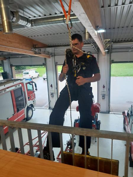 Um für Einsätze im steilen Gelände und auf Felswänden gut gerüstet zu sein und sicher arbeiten zu können, wurde gemeinsam mit Thomas Stippl vom Einsatzkommando „Cobra“ die richtige Handhabung der vorhandenen Gerätschaften geübt. In weiteren Schritten ist geplant, diese Übungsmöglichkeit auf alle Sprengbefugten des NÖ LFV auszuweiten.
