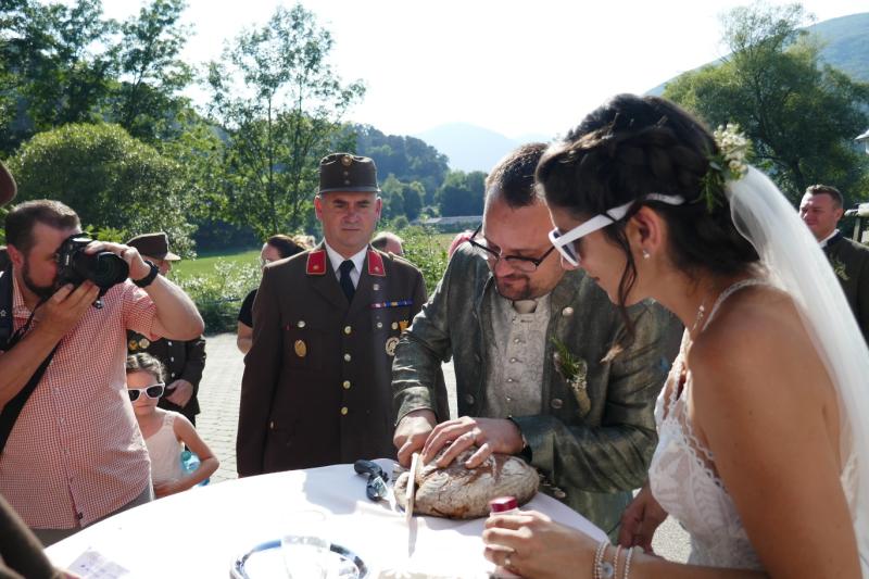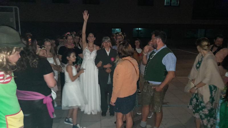 Danach feierten die Frischgetrauten mit ihren Gästen bis in die frühen Morgenstunden. Natürlich wurde Natascha auch von den Maskerern „entführt“, wo sie dann vom Ehemann und den Trauzeugen „ausgelöst“ wurde.