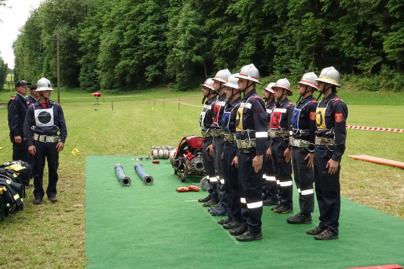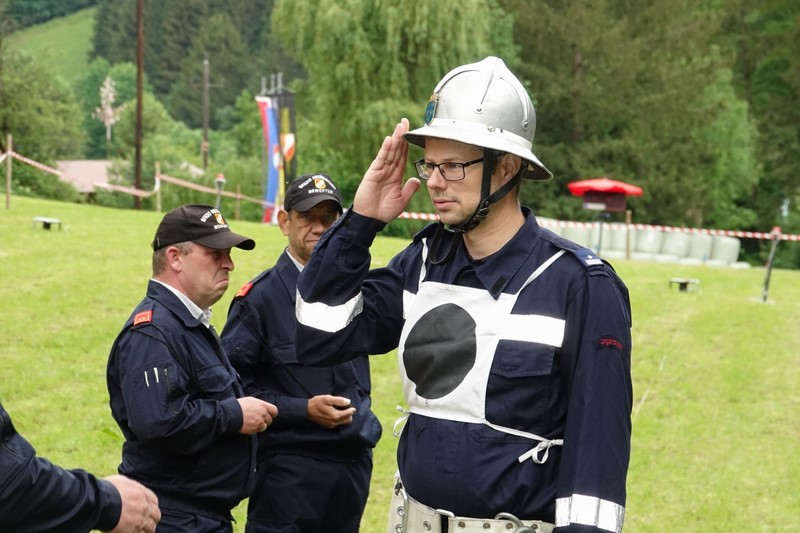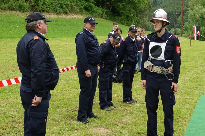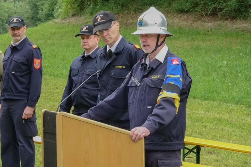 Zur Bewerbseröffnung konnte Abschnittskommandant-Stellvertreter ABI Michael Lechner den Bürgermeister Josef Freiler, Ortsvorsteher Albin Konlechner, Abschnittskommandant ABI Josef Weber, die 2 Bewerterteams unter Bewerbsleiter OBM Karl Zangl.