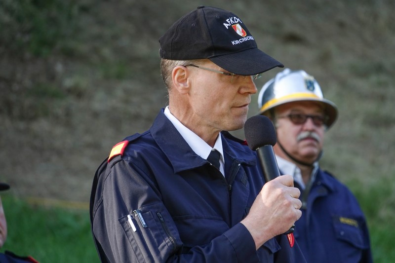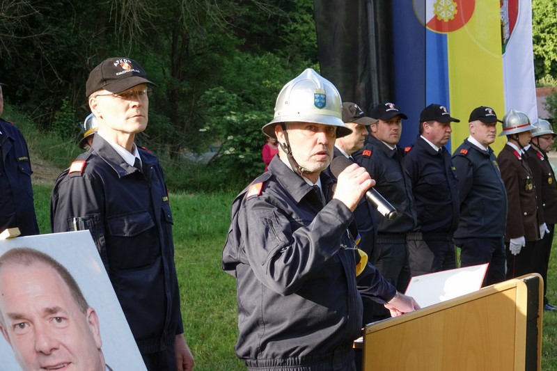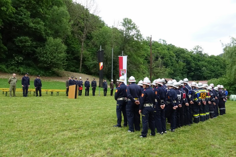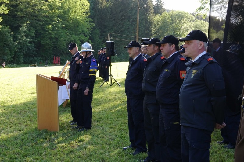 In seiner Rede danke Abschnittskommandant-Stellvertreter ABI Lechner den Teilnehmenden Bewerbsgruppe für die disziplinierte verhalten beim Bewerb. Er erinnerte an den Abschnittsbewerb in Frohsdorf, den Bezirksbewerb in Schwarzenbach und den Landesbewerb im NÖ Feuerwehr- und Sicherheitszentrum