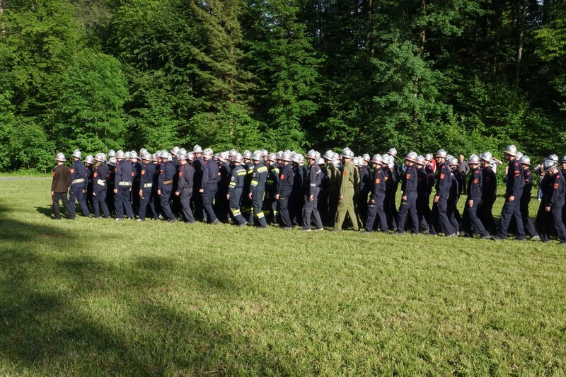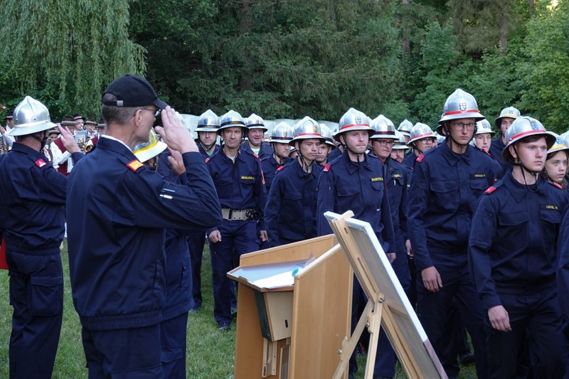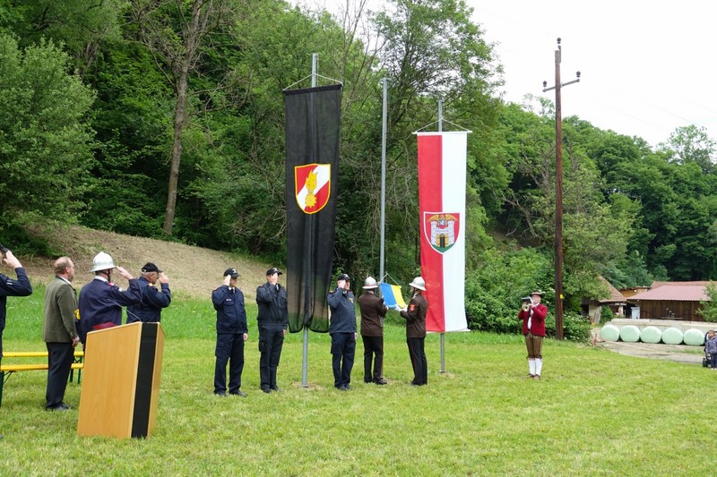 Dieser durfte auch den Abschluss des Abschnittsbewerbes mit Fahneneinholung, Landeshymne und Vorbeimarsch kommandieren.
