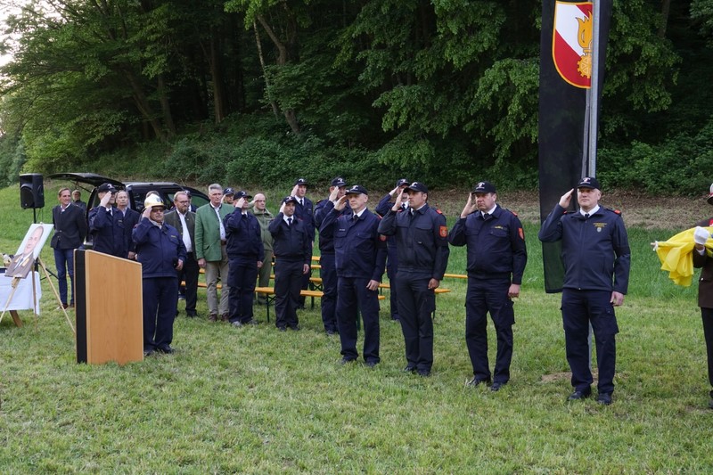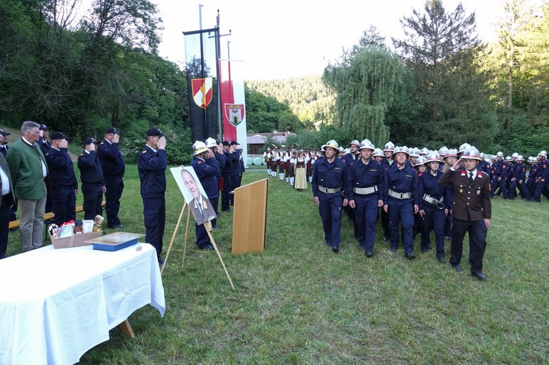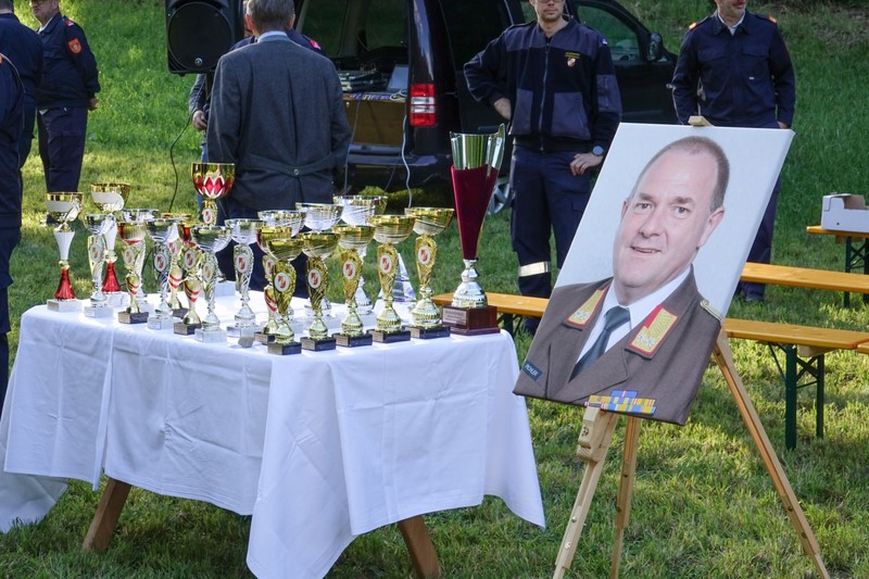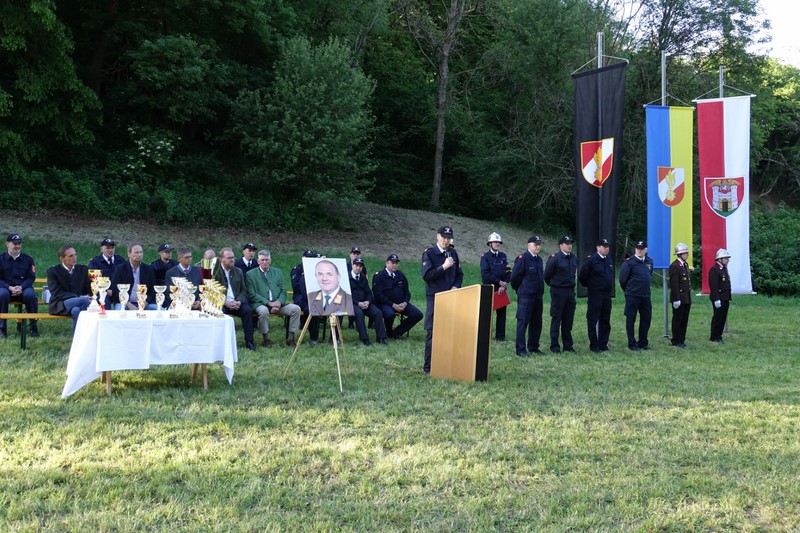 Zu Beginn der Siegerehrung stand ein gedenken an den verstorbenen Abschnittskommandant Bernhard Pichler, der diesen Abschnittsbewerb initiiert hatte und zu einem großen Teil organisierte. OBM Zangl wurde ein Rückblick vorgelesen und von der Stadtkapelle Kirchschlag ein „Ich hatt‘ einen Kameraden“ intoniert.
