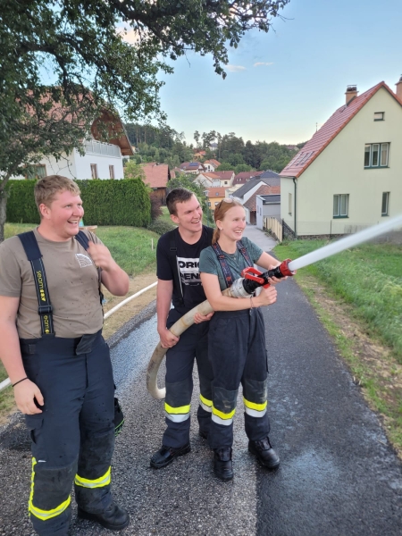 Nach erfolgtem Ansaugen und konstanter Wasserversorgung wurde noch ein Strahlrohrtraining mit Hohlstrahlrohr und Mehrzweckstrahlrohr durchgeführt.