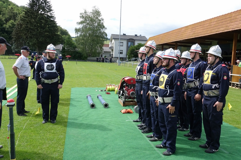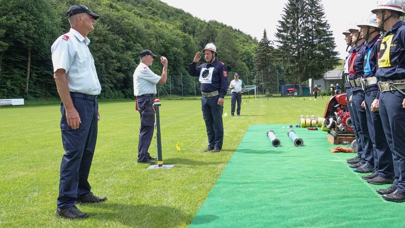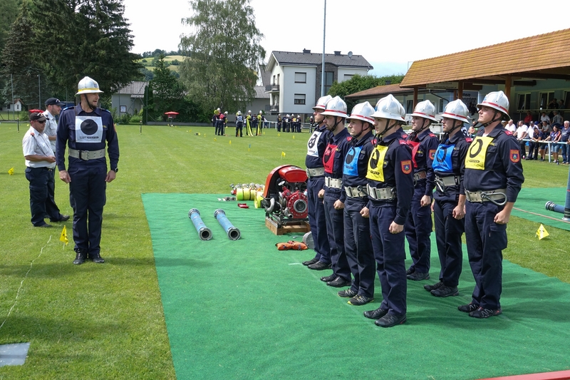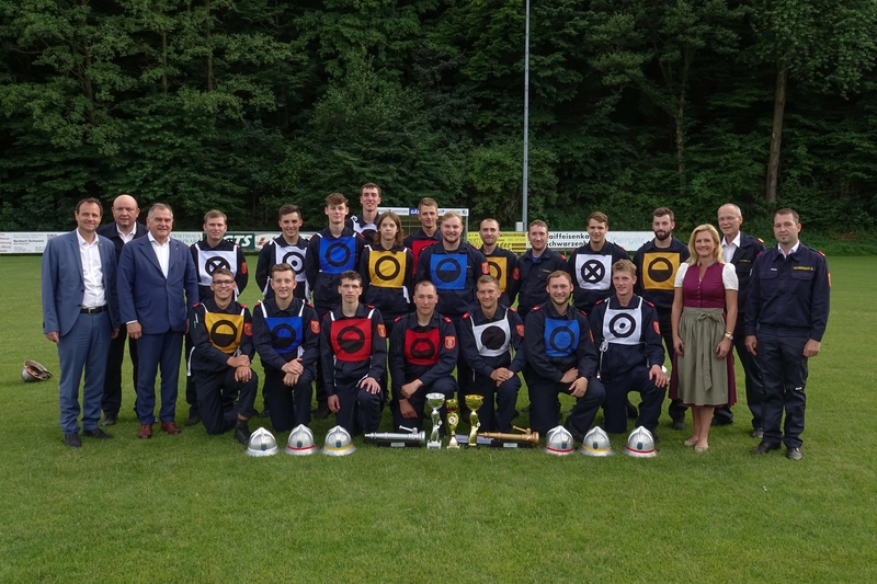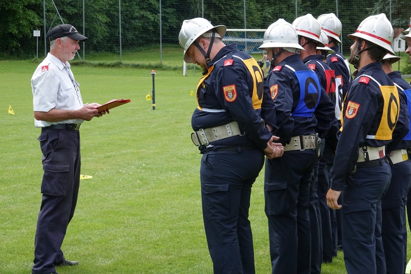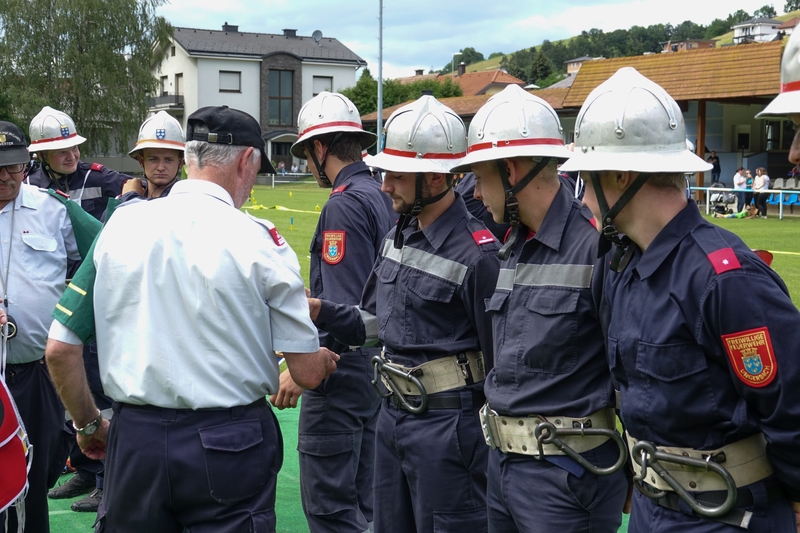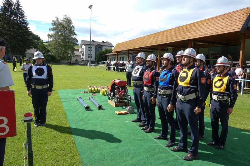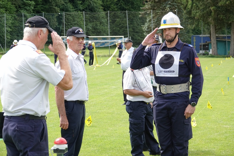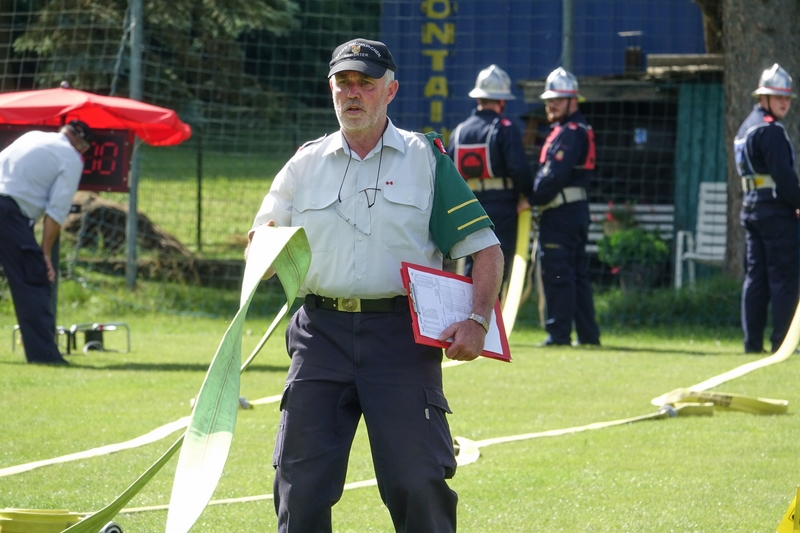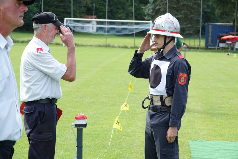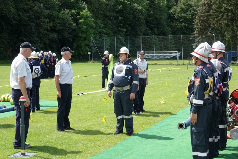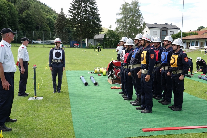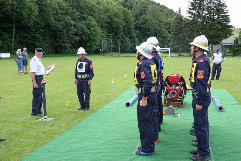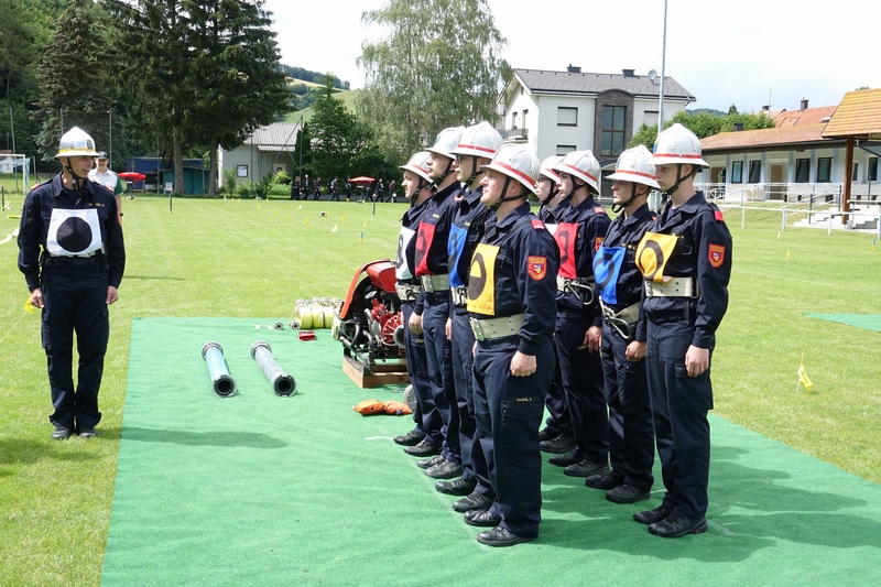 Danach wurde der Bewerb unter Bewerbsleiter und Hauptbewerter EHBI Rupert Ungersbäck und Hauptbewerter OBM Karl Zangl und ihren Teams auf dem Sportplatz des SC Schwarzenbach bei idealen Bedingungen vorbildlich durchgeführt.