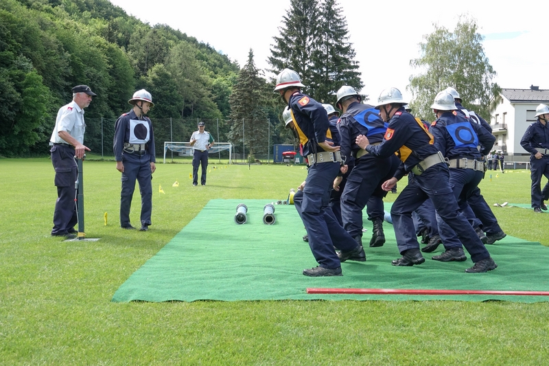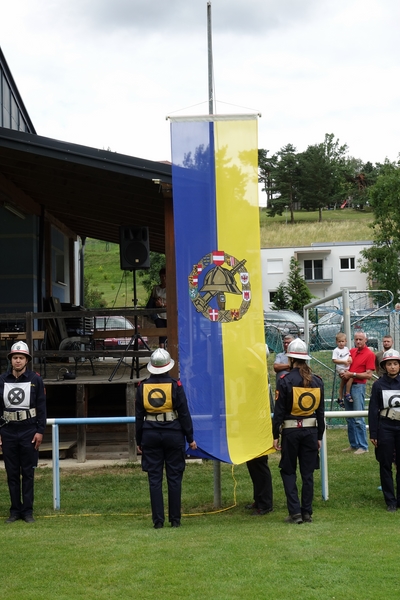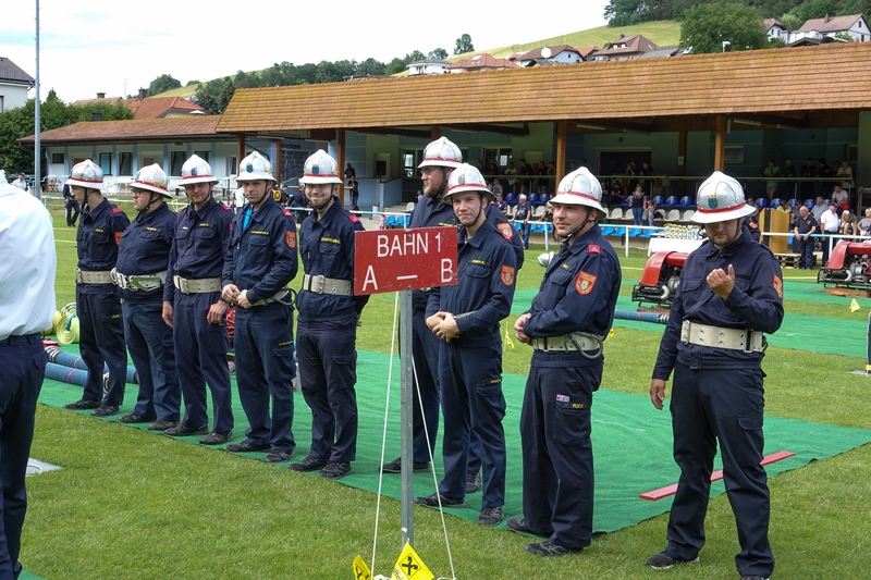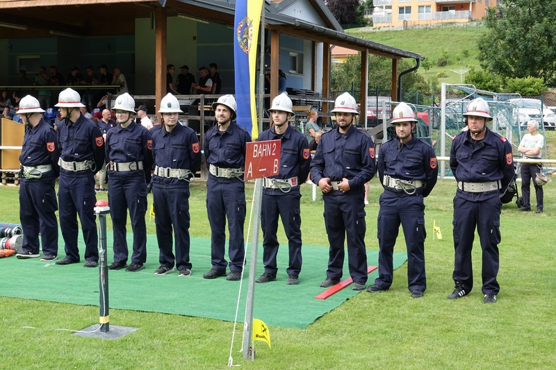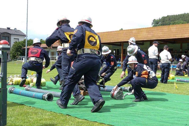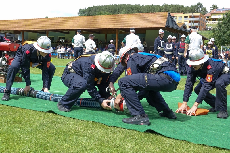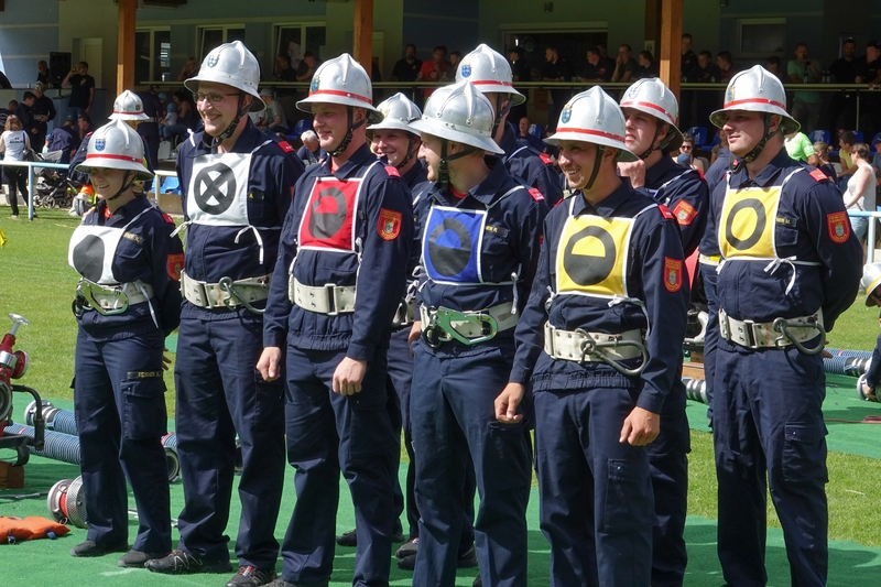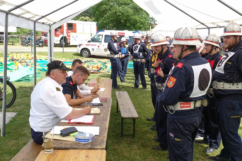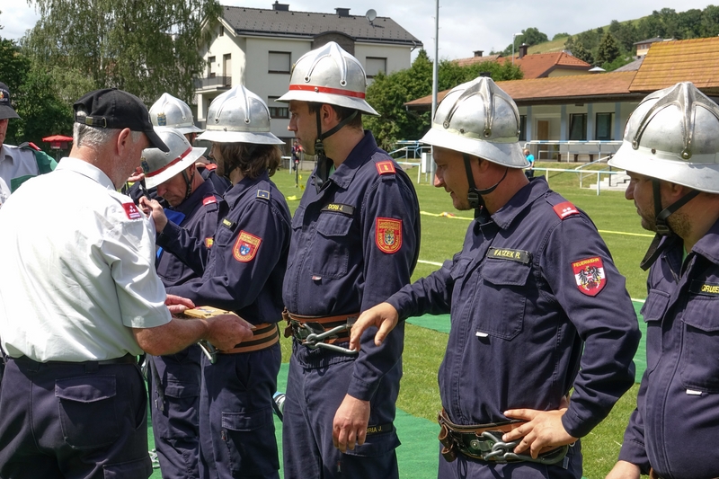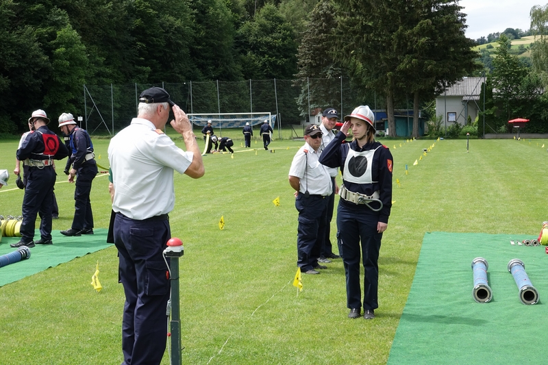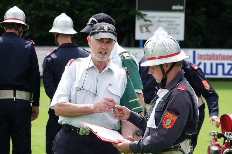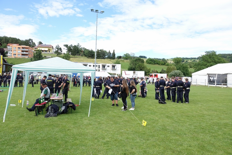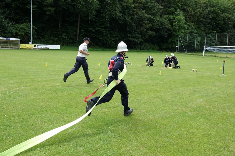 Danach wurde der Bewerb unter Bewerbsleiter und Hauptbewerter EHBI Rupert Ungersbäck und Hauptbewerter OBM Karl Zangl und ihren Teams auf dem Sportplatz des SC Schwarzenbach bei idealen Bedingungen vorbildlich durchgeführt.